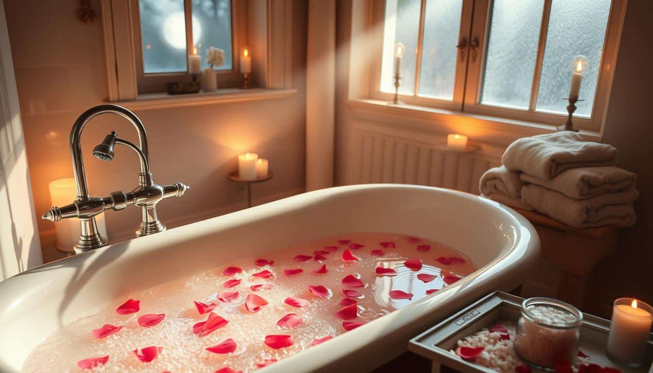 - Create a cozy, intimate bathing environment with rose petals and soft lighting